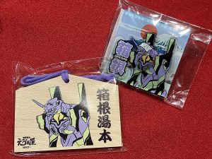 そんなエヴァの聖地に箱根湯本駅【エヴァ屋】というお店があり湯呑みと絵馬とマグネットを買いました!