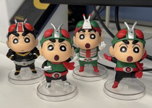 クレヨンしんちゃん自体に思い入れがあるわけではないのですが昭和の仮面ライダーが昔から好きで、パッとみクオリティも高くしんちゃんコラボもかなりいい味を出していたため会社のデスクに置きたくなってしまいまして…店員さんに声をかけてかなり広いスペースのどこに配置してあるか聞いてみたのですがなんと売り切れ。しかも一回500円のハイクオリティ仕様。納得。