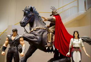北斗の拳の大きな像やエヴァンゲリオンのフィギュアなど、迫力ある展示を堪能📸