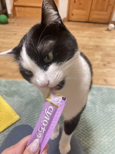 私のことをちゅ~るをくれる人と認識しているようで、ちゅ~るをあげるまでずっと後をついてくるのです。ほんとうに愛らしくてたまりません🐈