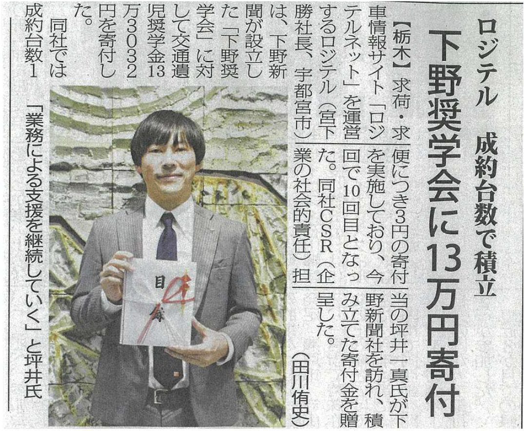 【物流ウィークリー】下野奨学会に13万円を寄付